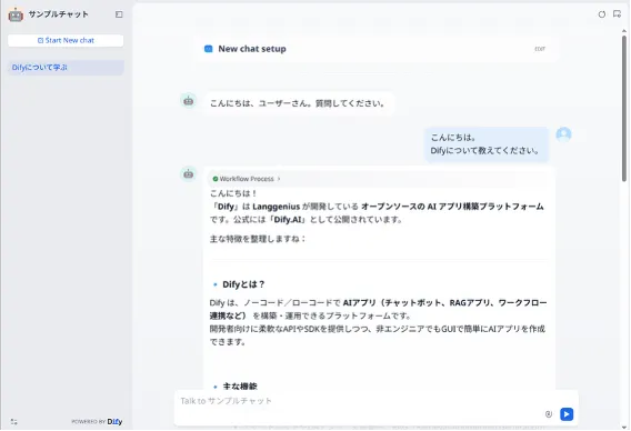 Dify(ディフィ)は、既存の大規模言語モデルに基づいたオープンソースのAIアプリ開発プラットフォームであり、ユーザが独自のチャットボットやAIアシスタント、ナレッジベースを簡単に作成・運用できる環境を提供しています。