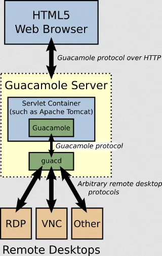 Apache Guacamole(アパッチ ワカモレ)はリモートデスクトッププロトコルを用いて他のPCにアクセスするためのWebアプリケーションです。