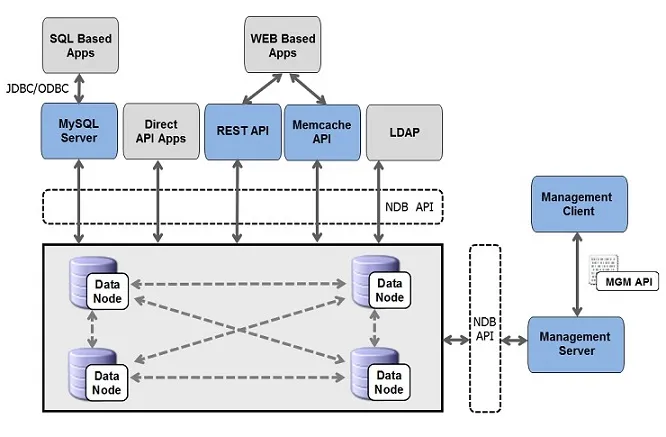 MySQL Cluster は、さらにJavaScript、Memcached、C++、Java、JPAおよびHTTP/RESTを介してネイティブNoSQLコネクティビティ を提供します。