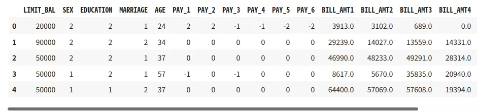 ※get_data('credit')で取得できるデータセットは、「Default of Credit Card ClientsDatase」と呼ばれるUCI(機械学習リポジトリー)のデータセットです。このデータセットには、2005年4月から2005年9月までの台湾のクレジットカードクライアントの支払い状況、人口統計学的要因、クレジットデータ、支払い履歴、および請求明細に関する情報が含まれています。24,000のサンプルと25の特徴量があります。