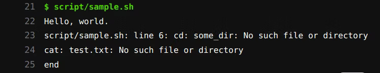 コマンド が 0 以外を返したときに exit させるため、shebang に -e を設定します。 これで、cd 先のディレクトリが存在しない場合や、cat 対象のファイルが存在しない場合にスクリプトを中断し、ジョブを失敗させることができます。[1]