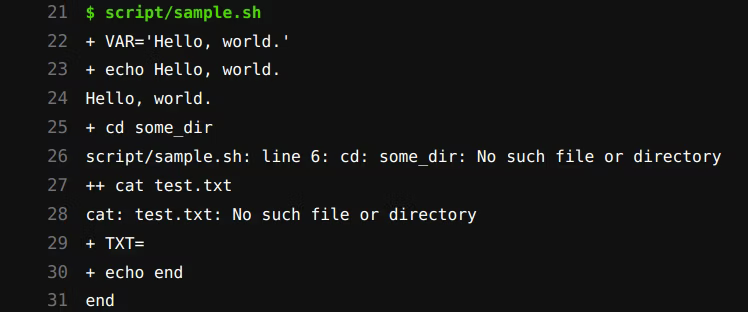 shebang で指定した場合は、スクリプト内のステップが一律出力されてしまうので、秘匿情報を含む環境変数を扱っている場合 は set -x, set +x を適宜書くか、ステップが追えるような echo を書いておくようにしましょう。